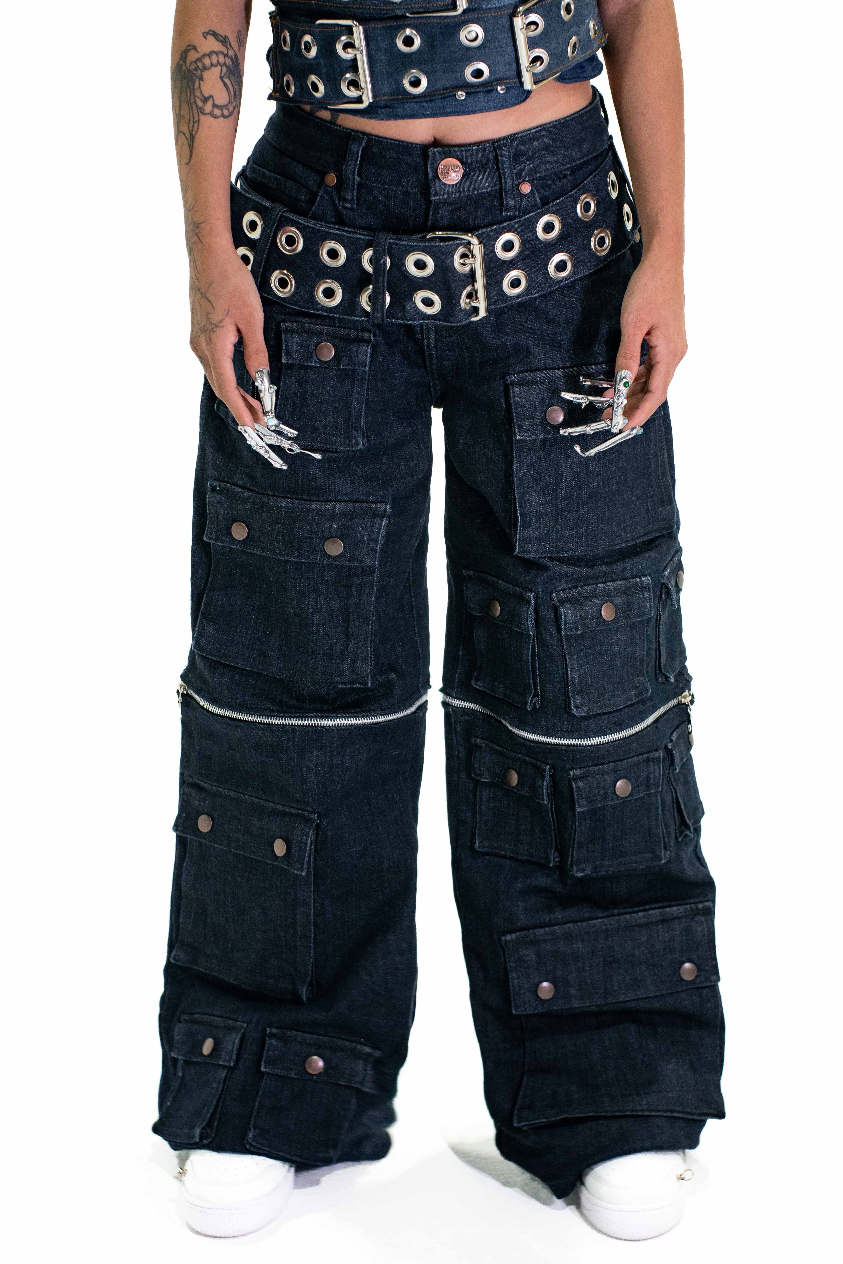 Straight Removable Leg Cargo Jeans With A Denim Belt- YASMINE